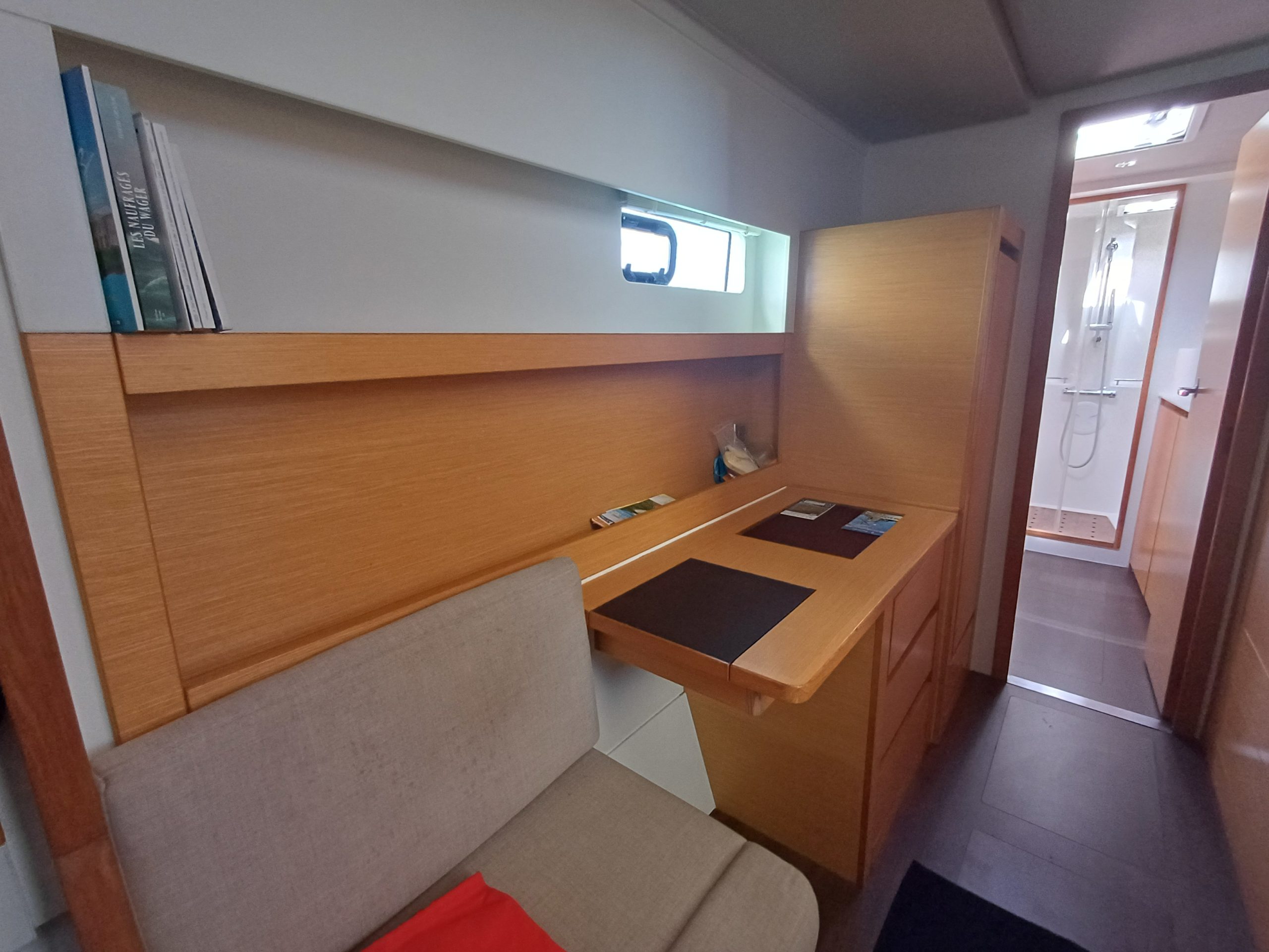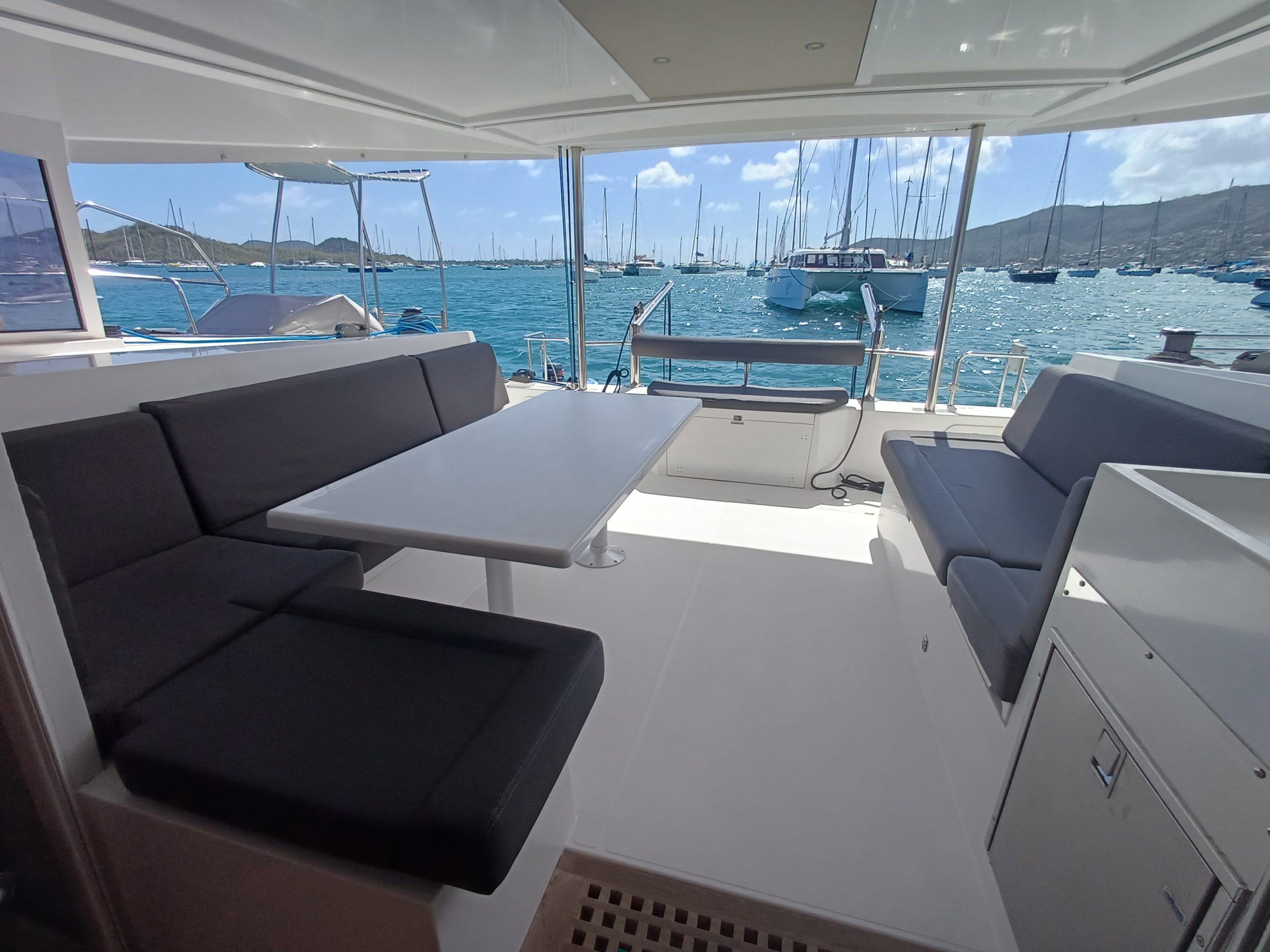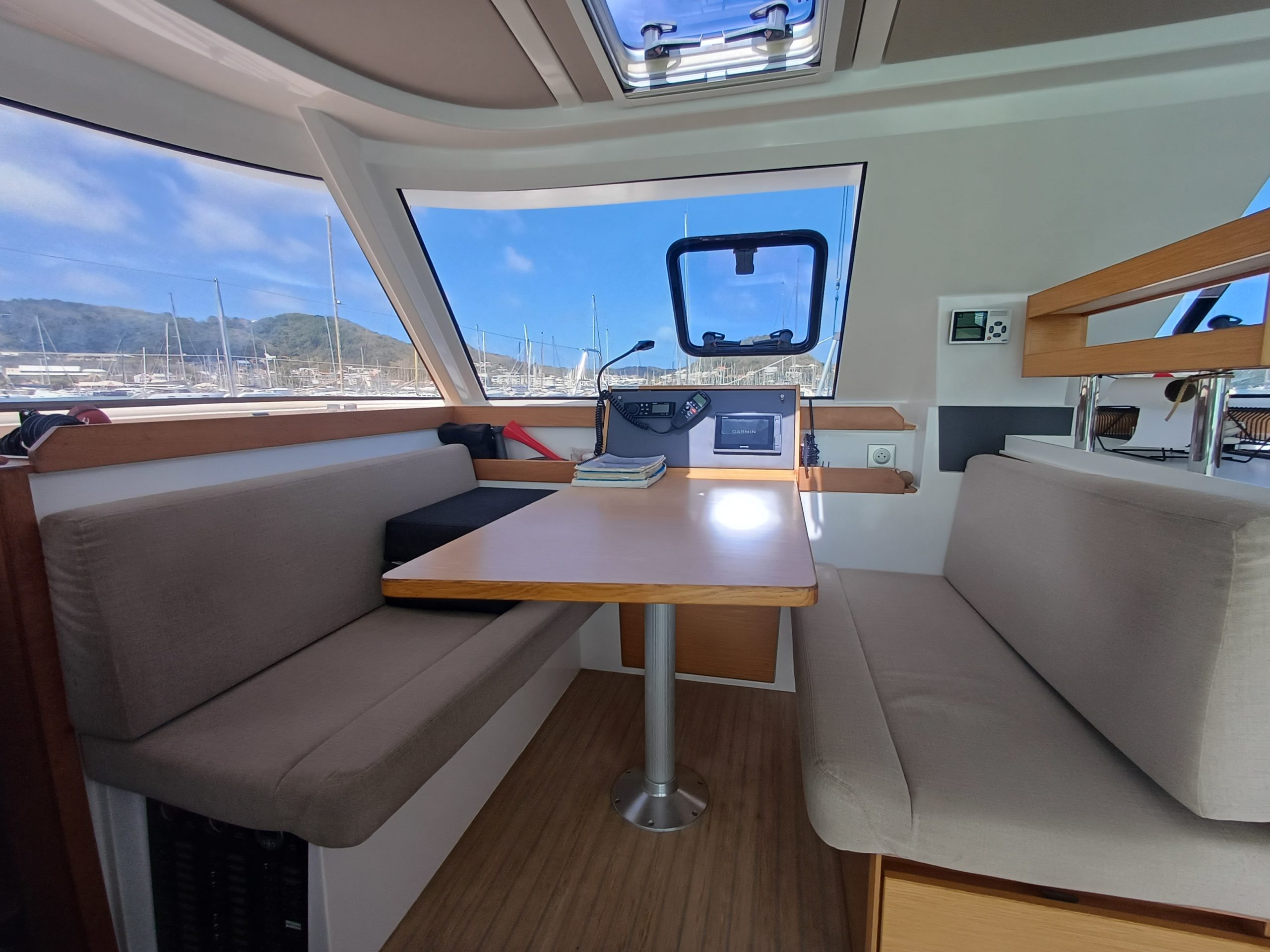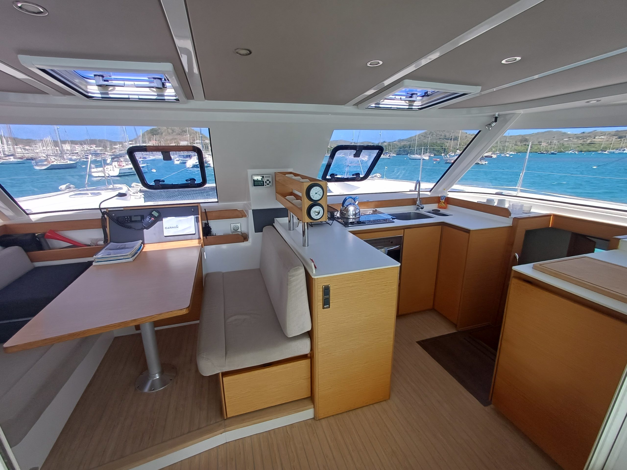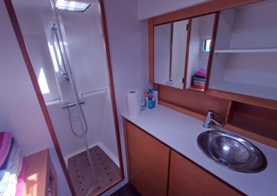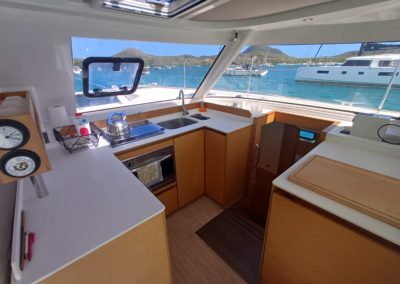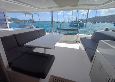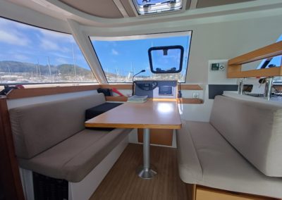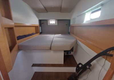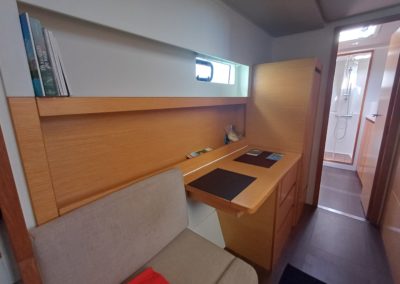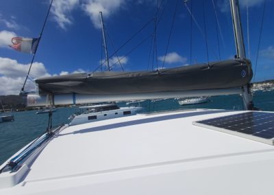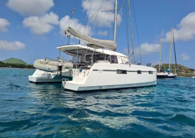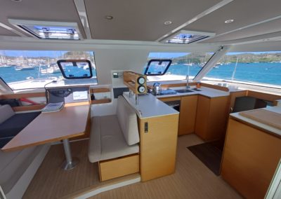 Si le modèle est reconnu pour son concept open (un espace commun, ouvert et de plain pied entre cockpit et carré), ses performances (caractérisées par le meilleur rapport poids / surface de voile de sa catégorie) et son agrément (grosse capacité de chargement et de rangement, confort et agrément des cabines), ce bateau est en plus dans un excellent état et idéalement équipé (panneaux solaires, annexe + moteur 15cv et bossoirs très pratiques, dessalinisteur, …) pour assurer un confort optimum sans charger outrageusement le bateau et ainsi lui permettant de garder ses qualités véliques.