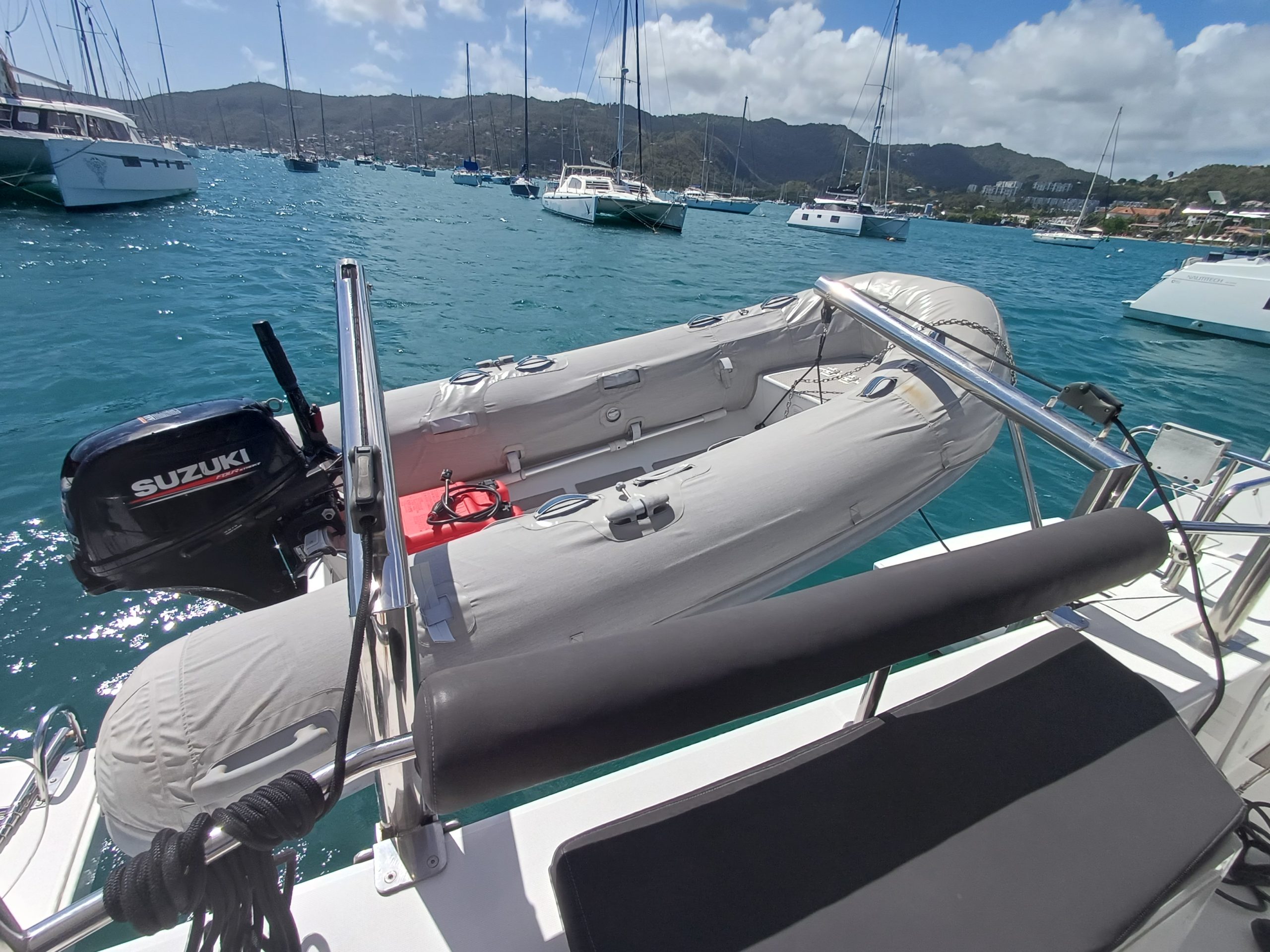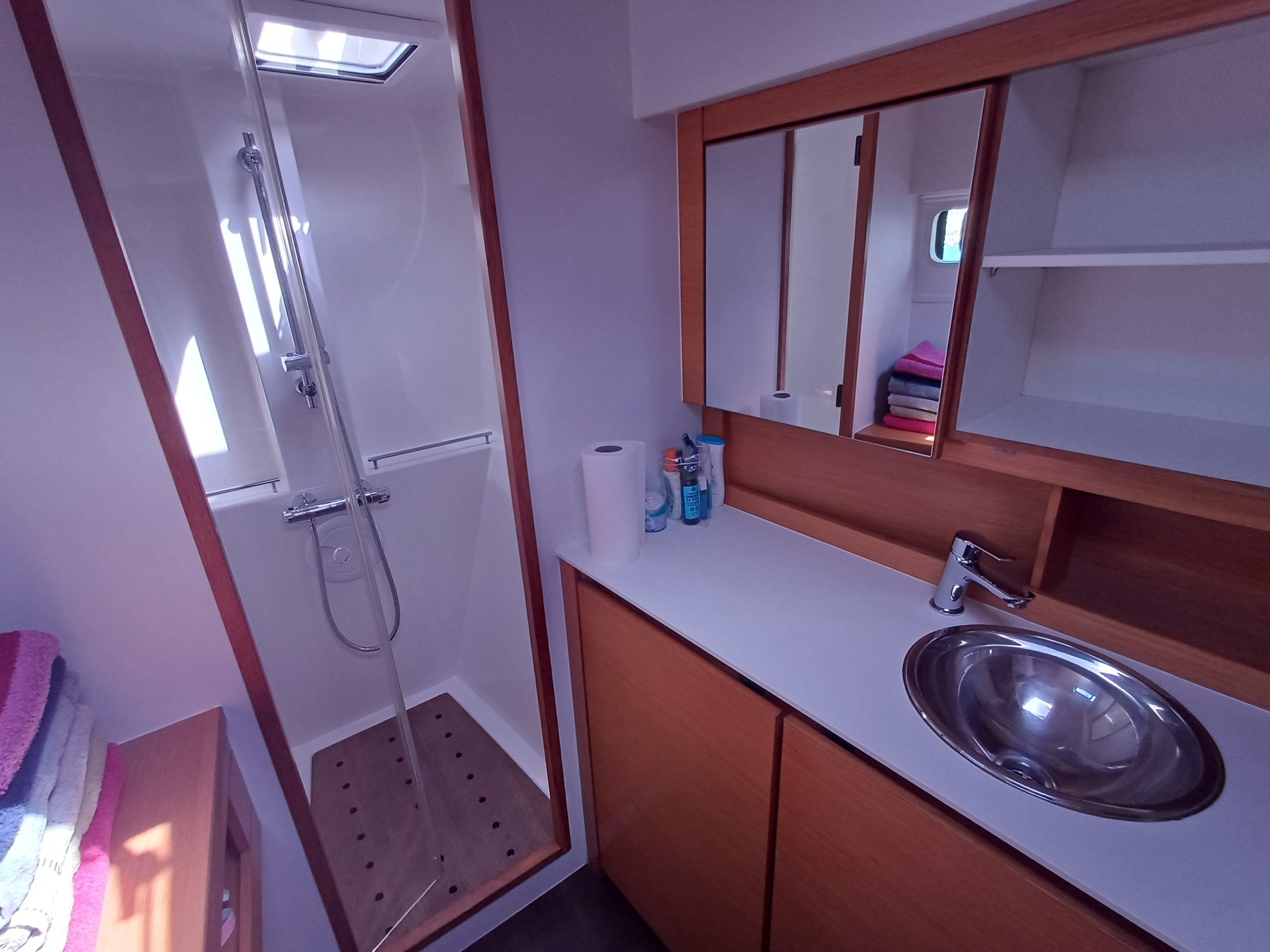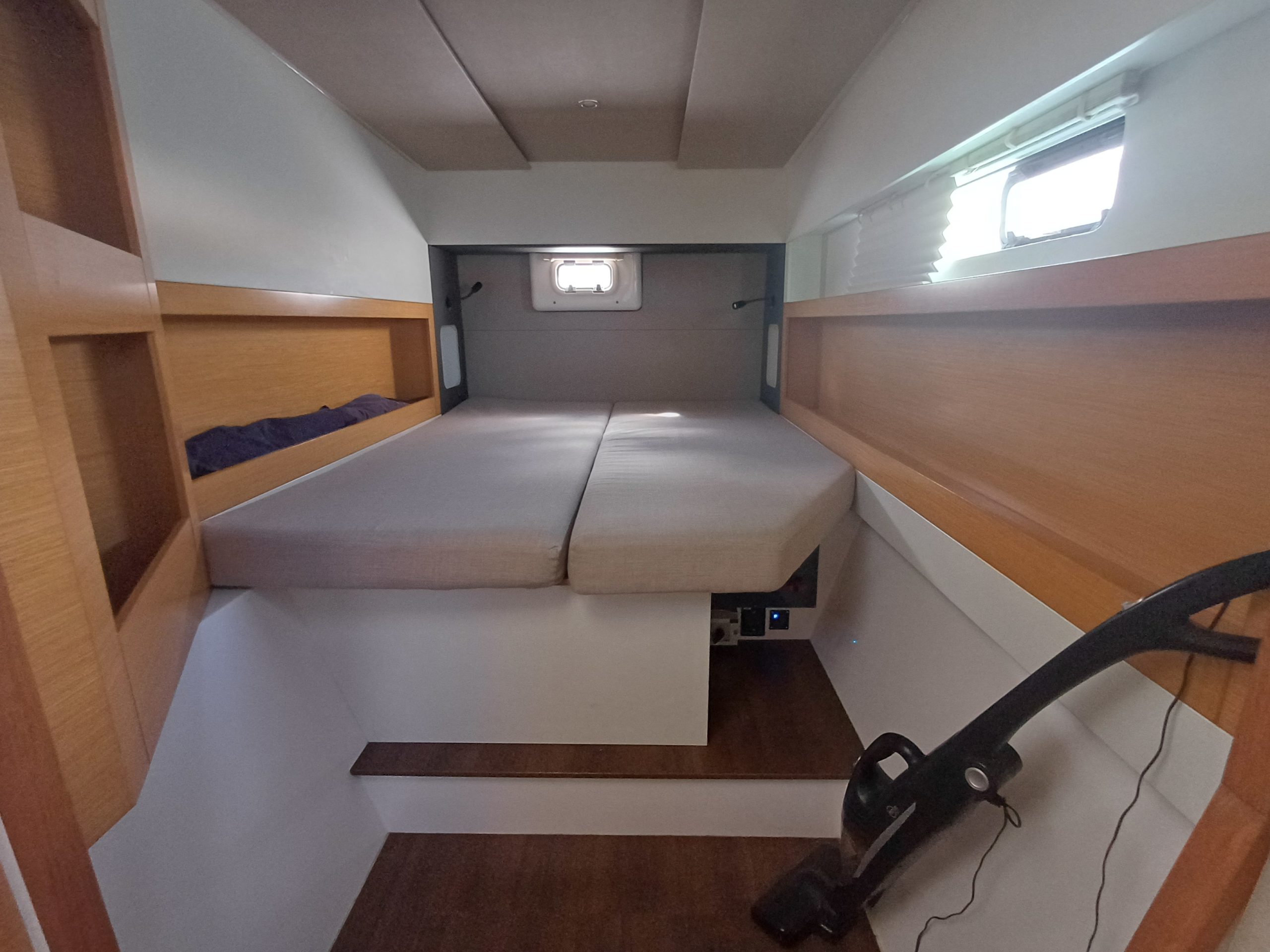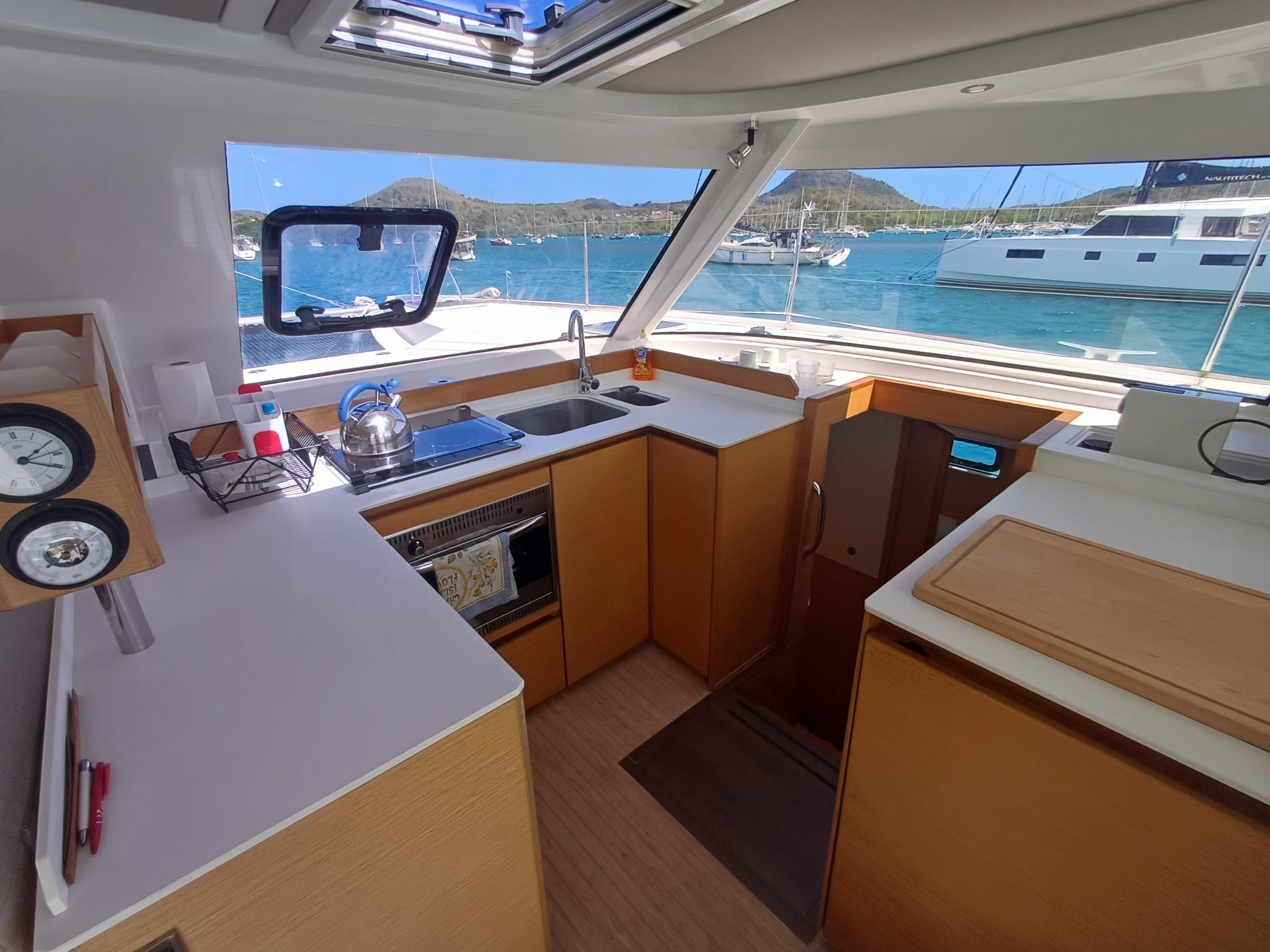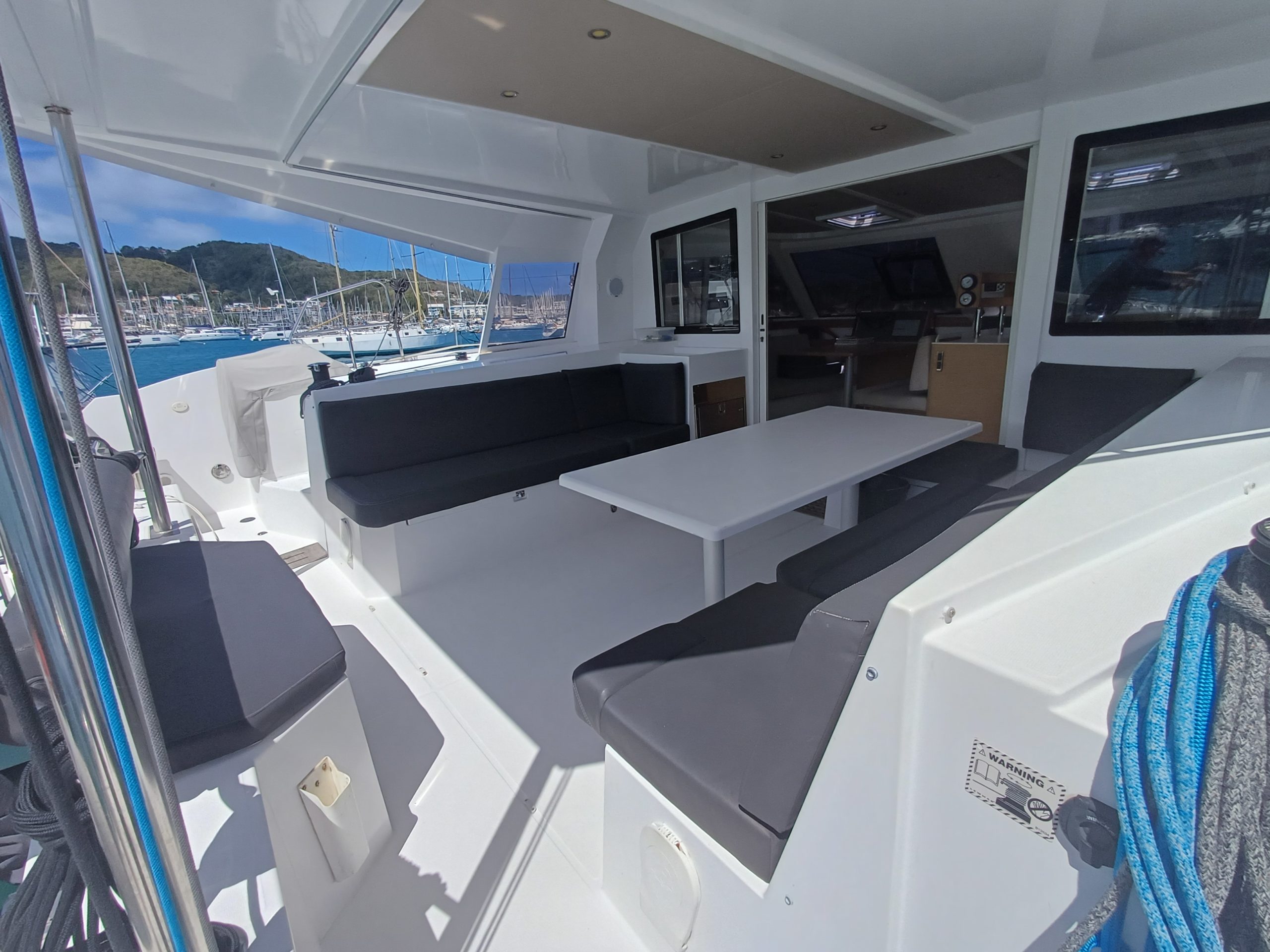Si le modèle est reconnu pour son concept open (un espace commun, ouvert et de plain pied entre cockpit et carré), ses performances (caractérisées par le meilleur rapport poids / surface de voile de sa catégorie) et son agrément (grosse capacité de chargement et de rangement, confort et agrément des cabines), ce bateau est en plus dans un excellent état et idéalement équipé (panneaux solaires, annexe + moteur 15cv et bossoirs très pratiques, dessalinisteur, …) pour assurer un confort optimum sans charger outrageusement le bateau et ainsi lui permettant de garder ses qualités véliques.