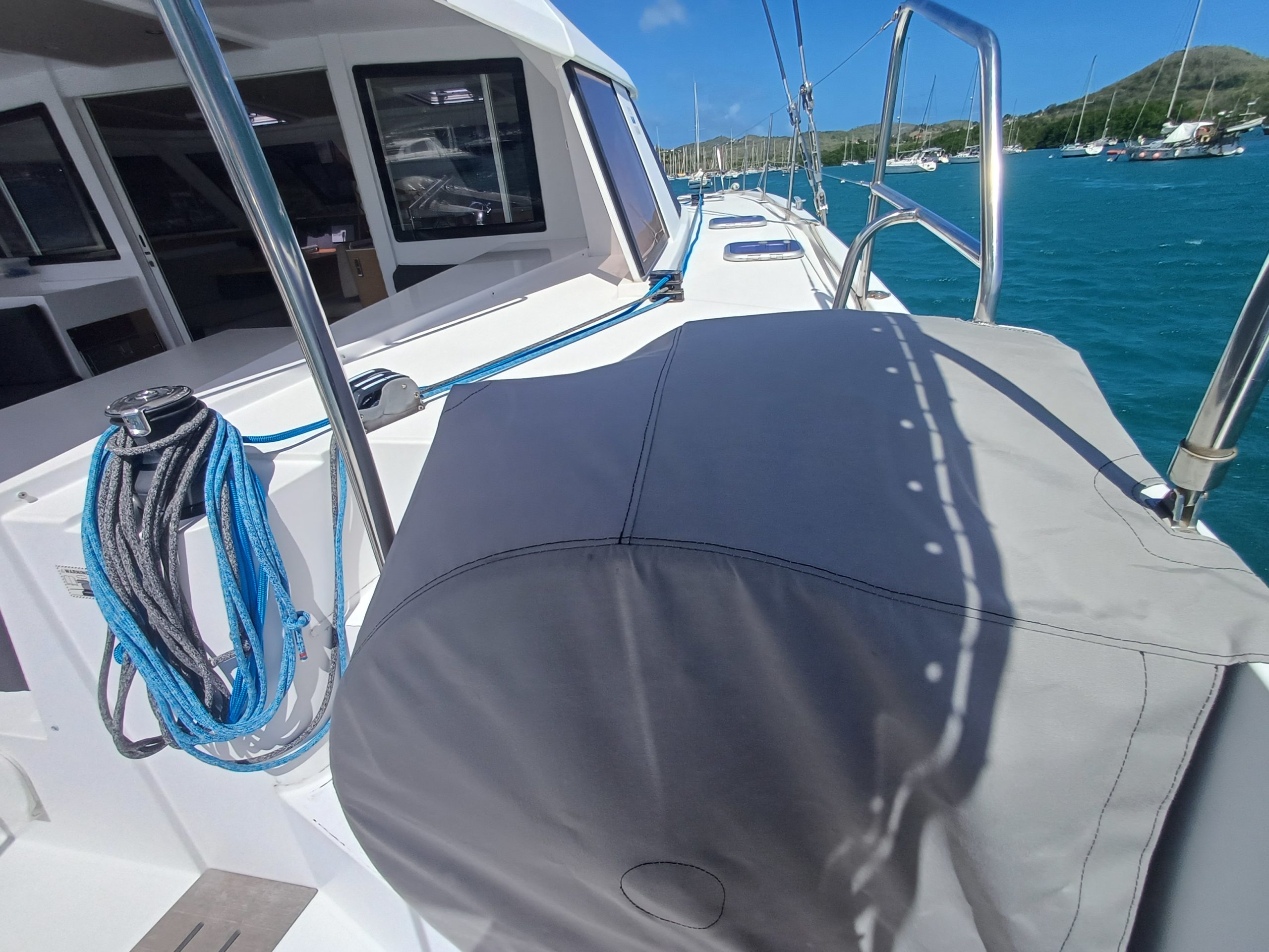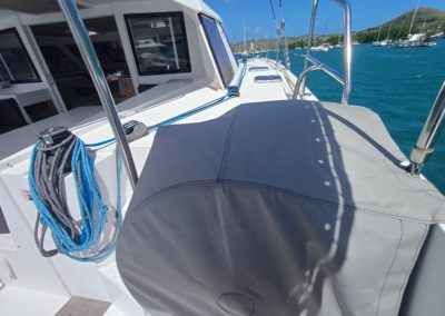 Un grand nombre de travaux encore récents (changement batteries, nouveau trampoline noir, carénage complet et révision radeau de survie, changement des protections de barre, nouveau lazybag, nouveau batyline, …) en font un bateau à découvrir absolument !
