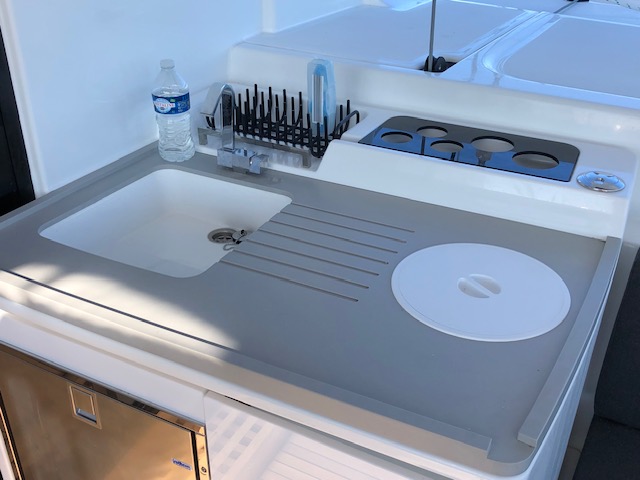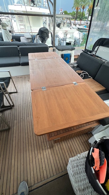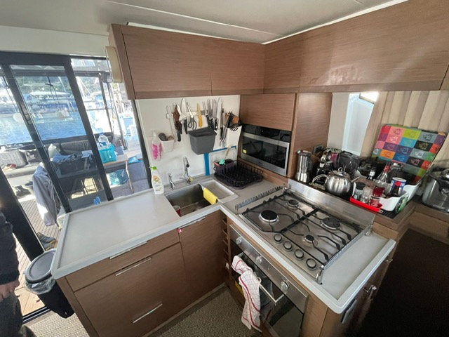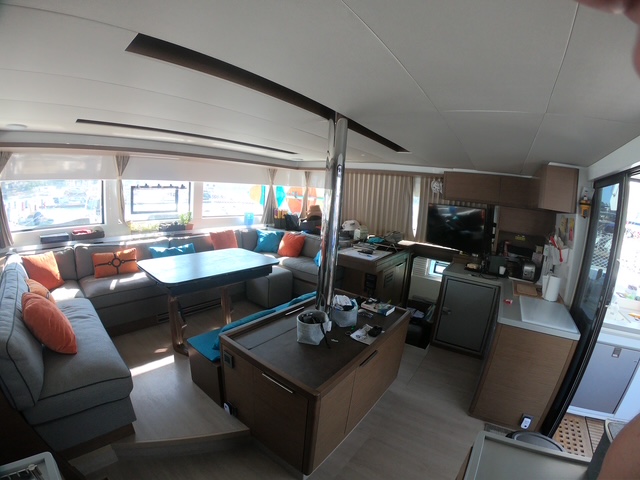 Cuisine entièrement équipée (four, micro-ondes, lave-vaisselle, plancha), pont en teck avec bimini rigide, et espace de vie spacieux pour des moments inoubliables.