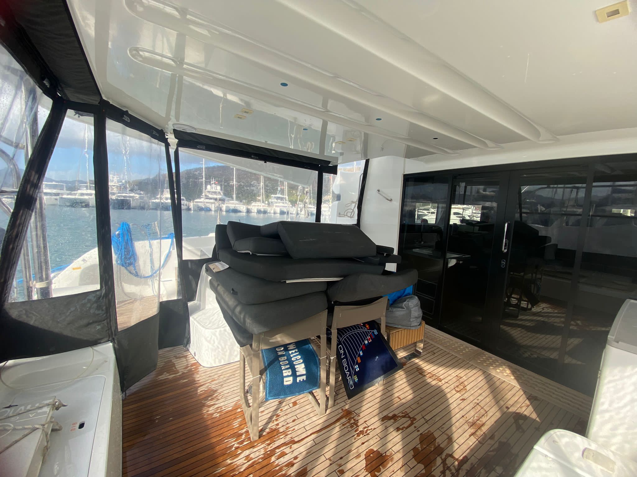 Dès les premiers instants à bord, une sensation d’espace et de fluidité s’impose naturellement. Les volumes généreux, baignés de lumière, créent une atmosphère à la fois raffinée et apaisante. Chaque zone de vie semble dialoguer avec l’extérieur, invitant à profiter pleinement de l’environnement marin, que ce soit lors d’une traversée paisible ou au mouillage dans une crique méditerranéenne.