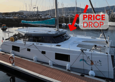 Discover the Fountaine Pajot Saona 47, a catamaran designed for self-sufficiency at sea. Built in 2019, this model combines elegance, performance and state-of-the-art equipment for long voyages. Its spacious layout and numerous options make it ideal for sailing around the globe in comfort and peace of mind.