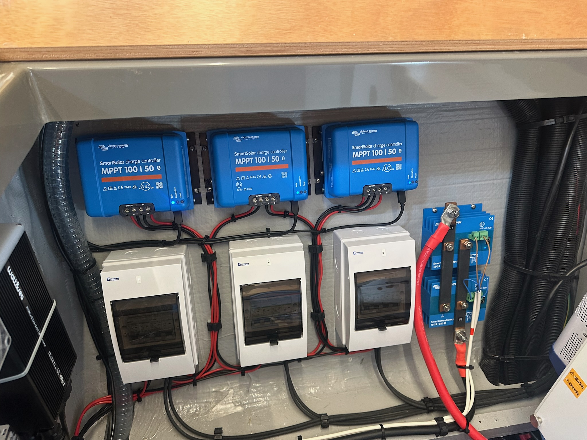 - Solar pannels 3 x 400W on a custom-built gantry + 3 x Mppt100/30