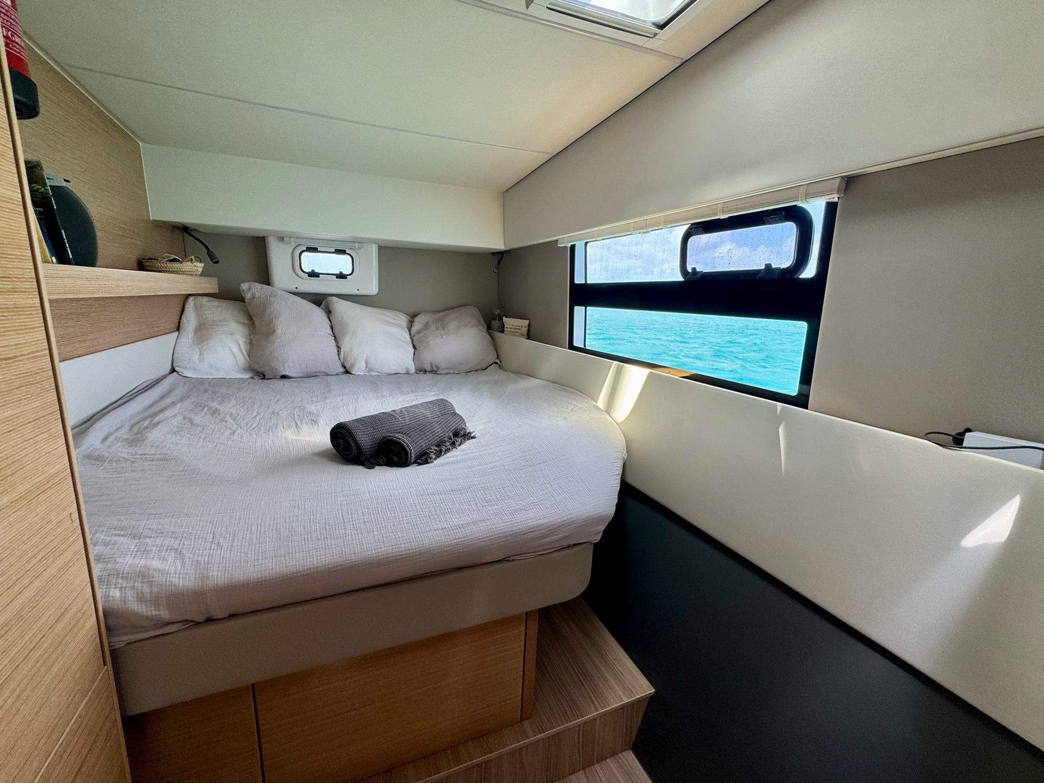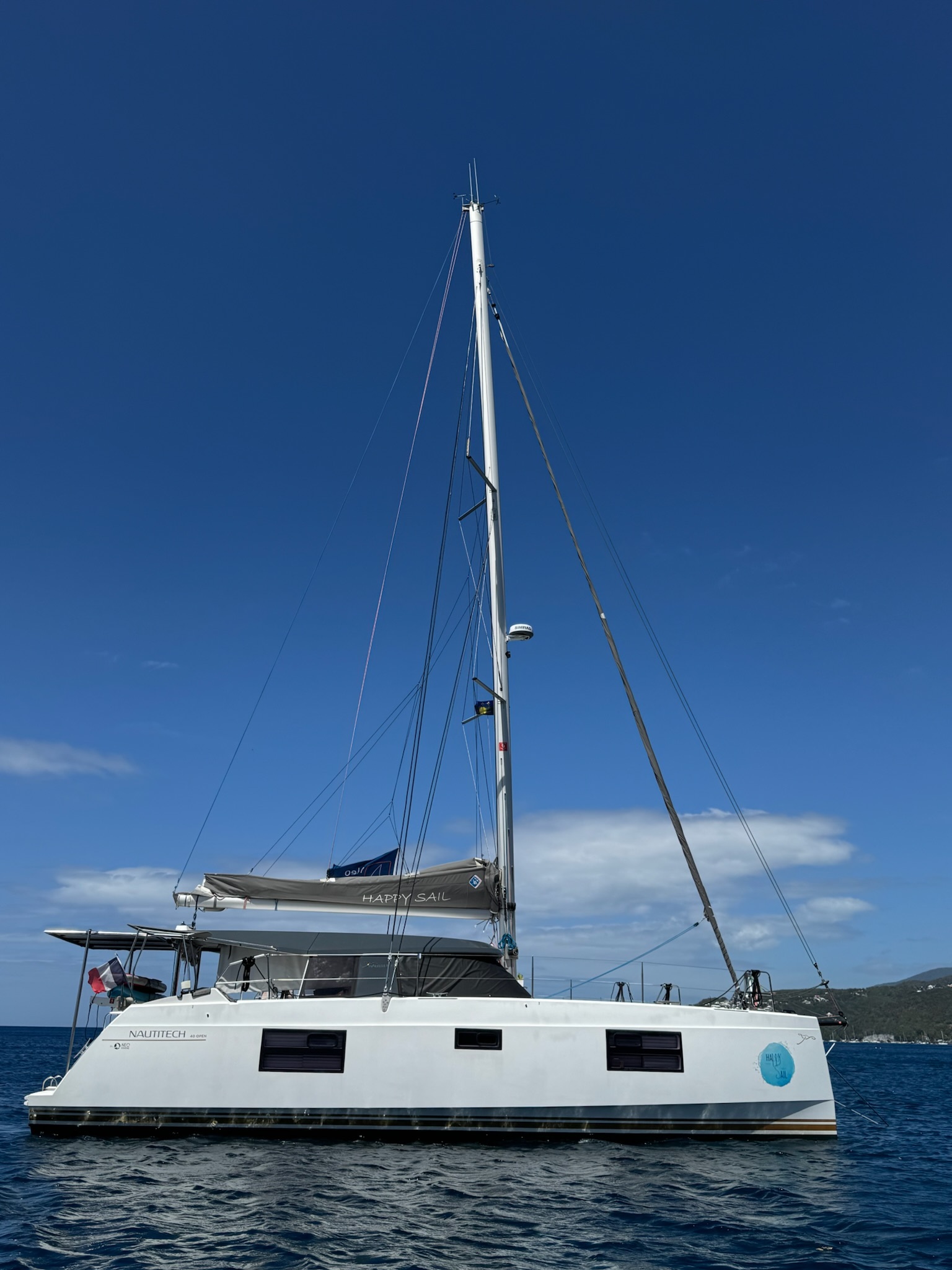 Discover Happy Sail, a 2021 Nautitech 40 Open, a catamaran designed by Marc Lombard Yacht Design, perfect for offshore cruising enthusiasts, onboard living, and maritime adventures. This boat is configured in the owner’s version, featuring 3 double cabins and 2 bathrooms, combining comfort, space, and performance—ideal for families, couples, or solo sailors.