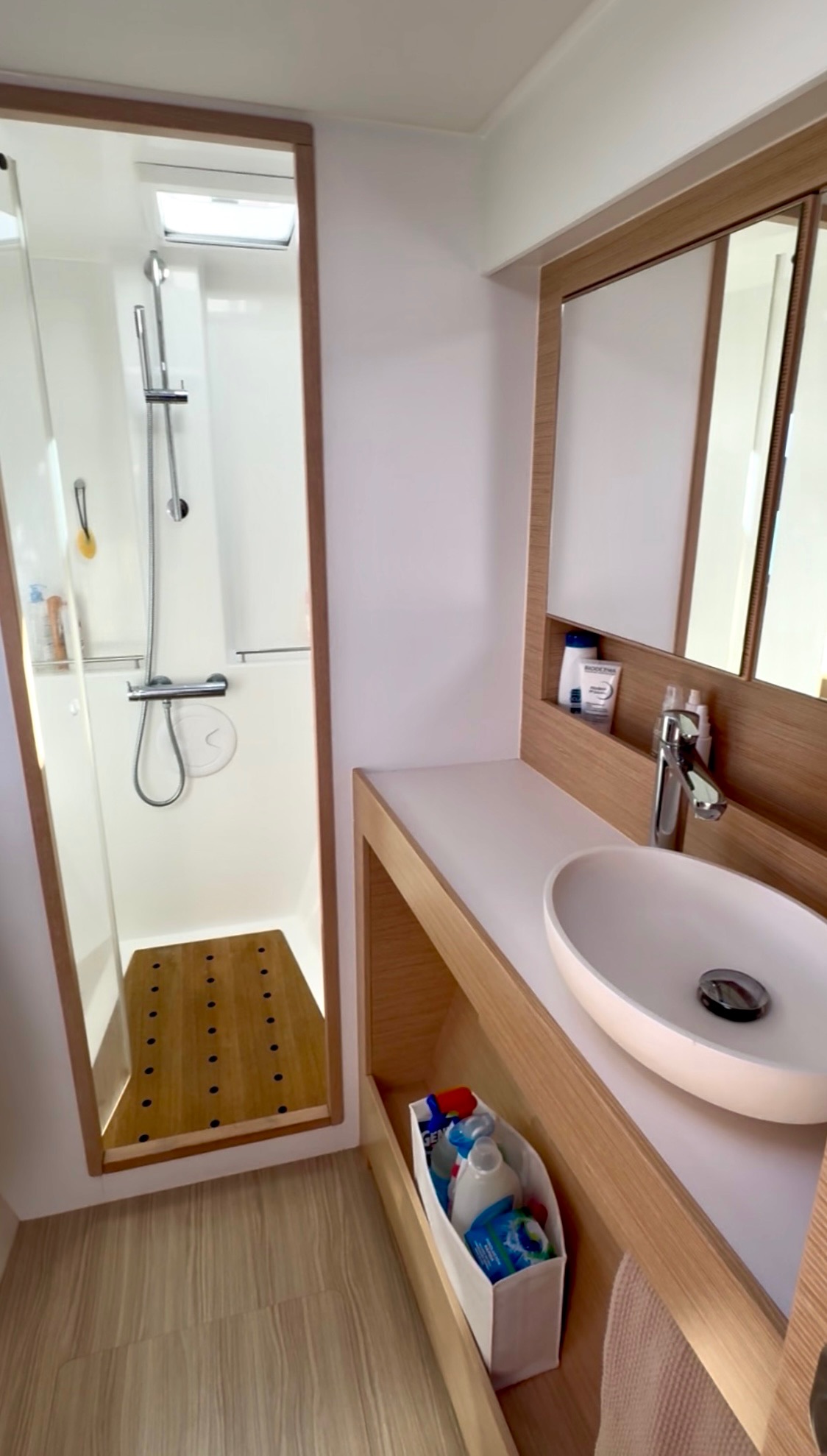 This Nautitech 40 Open, in its owner’s version, is configured for long voyages. It is equipped and prepared to sail around the world with total comfort, without any constraints regarding energy and water production.