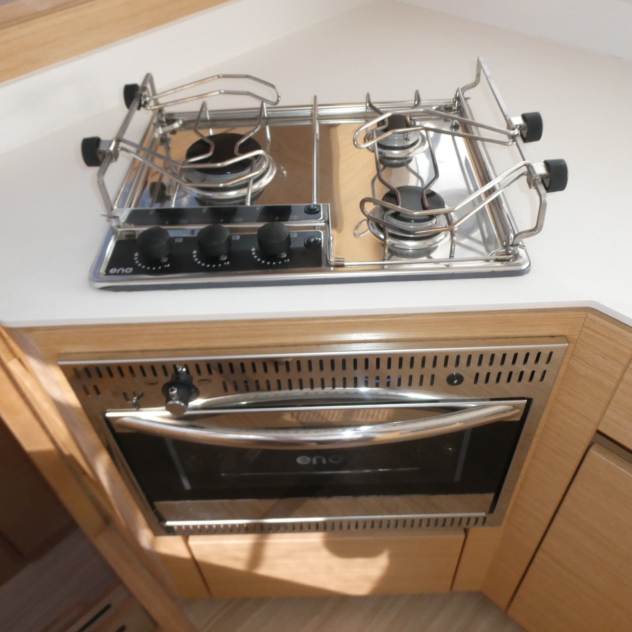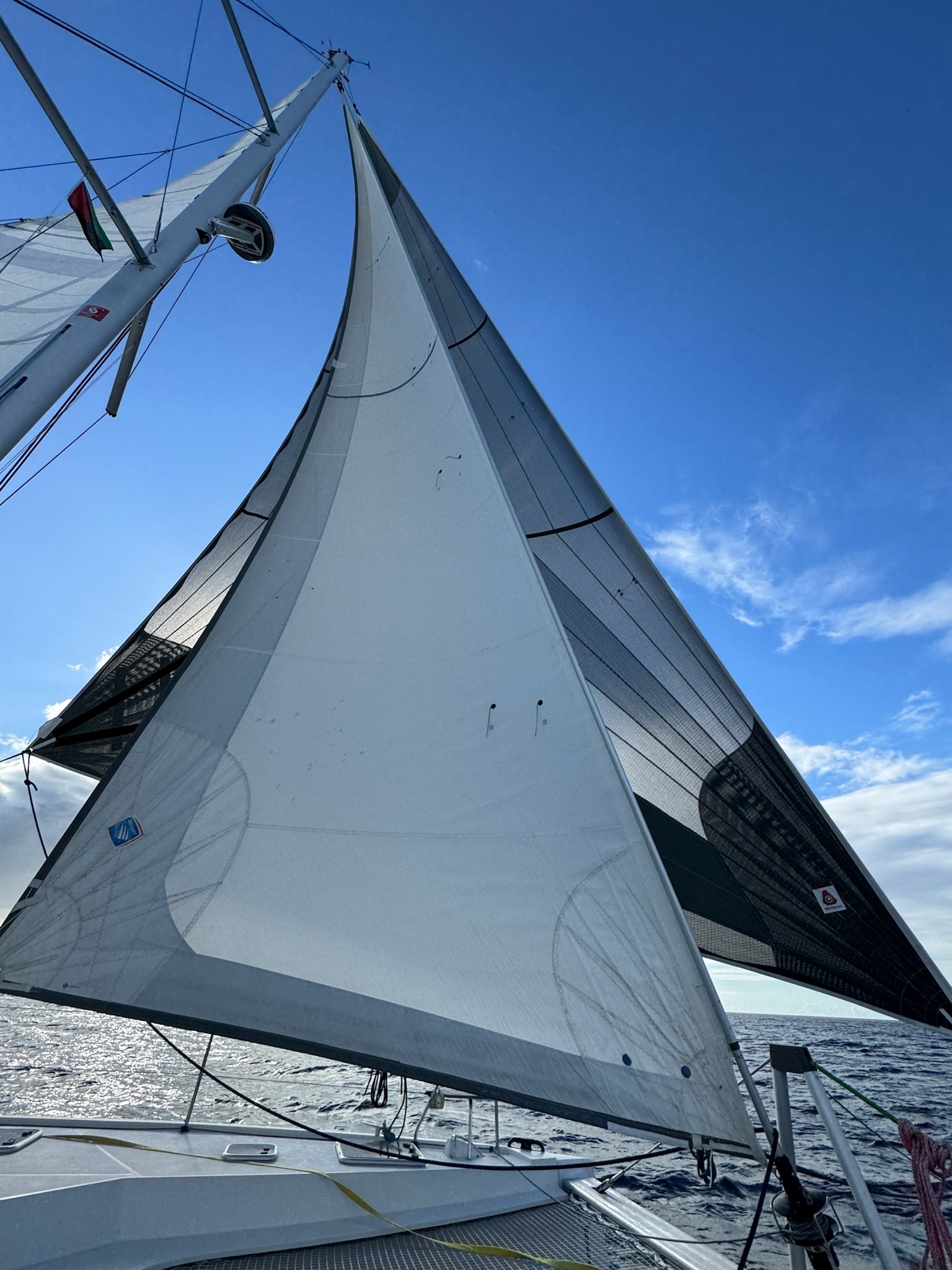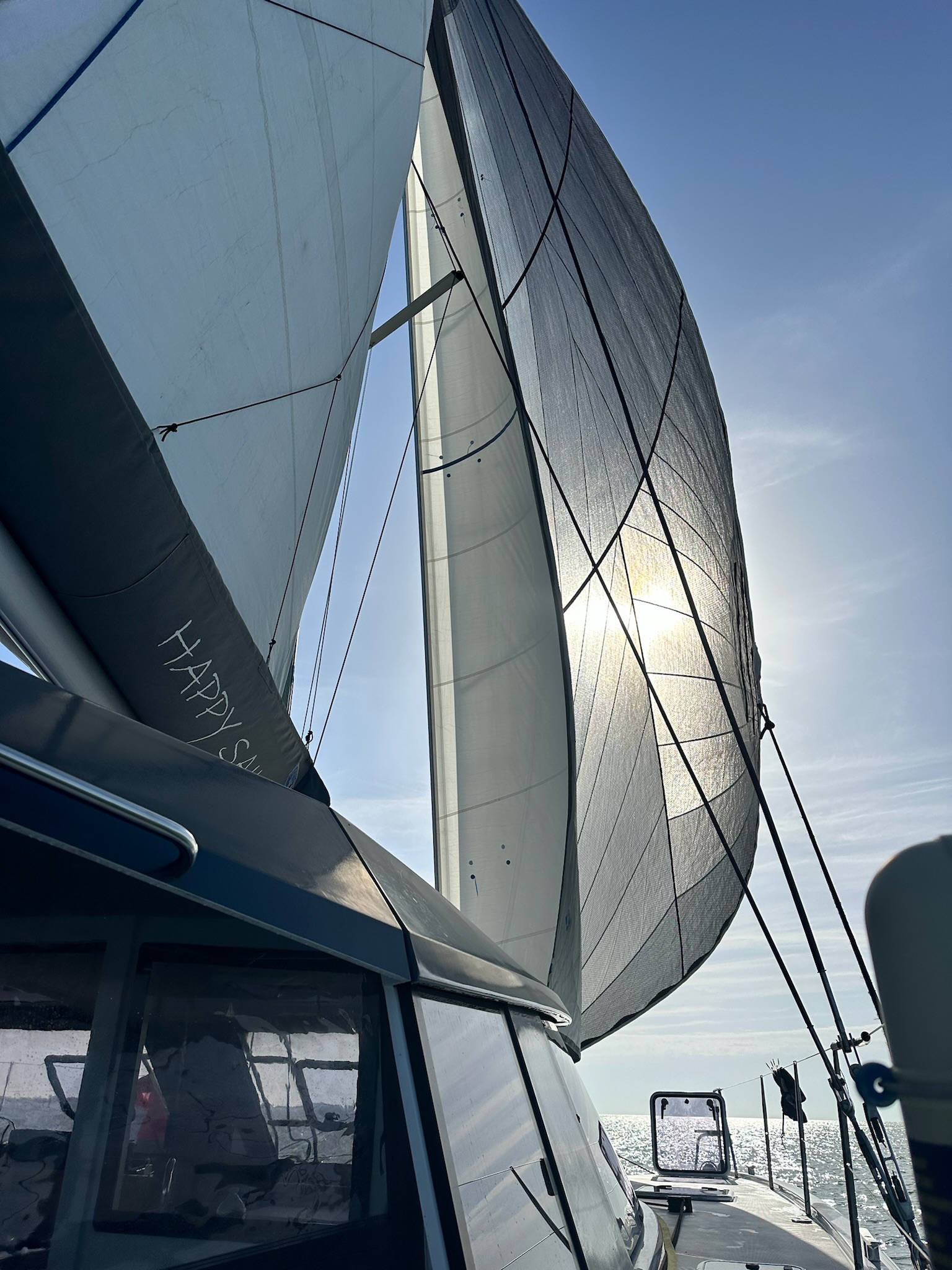 Happy Sail is equipped with Dacron sails (63 m² full-batten mainsail, 28 m² self-tacking jib, 103 m² Code D, and 55 m² Code 0 from Delta Voiles), recently serviced for worry-free sailing. Its Volvo Penta D1-30F engines (1,000 hours, recently serviced in December 2025) and 130 SR-D sail drives ensure exceptional reliability and handling.