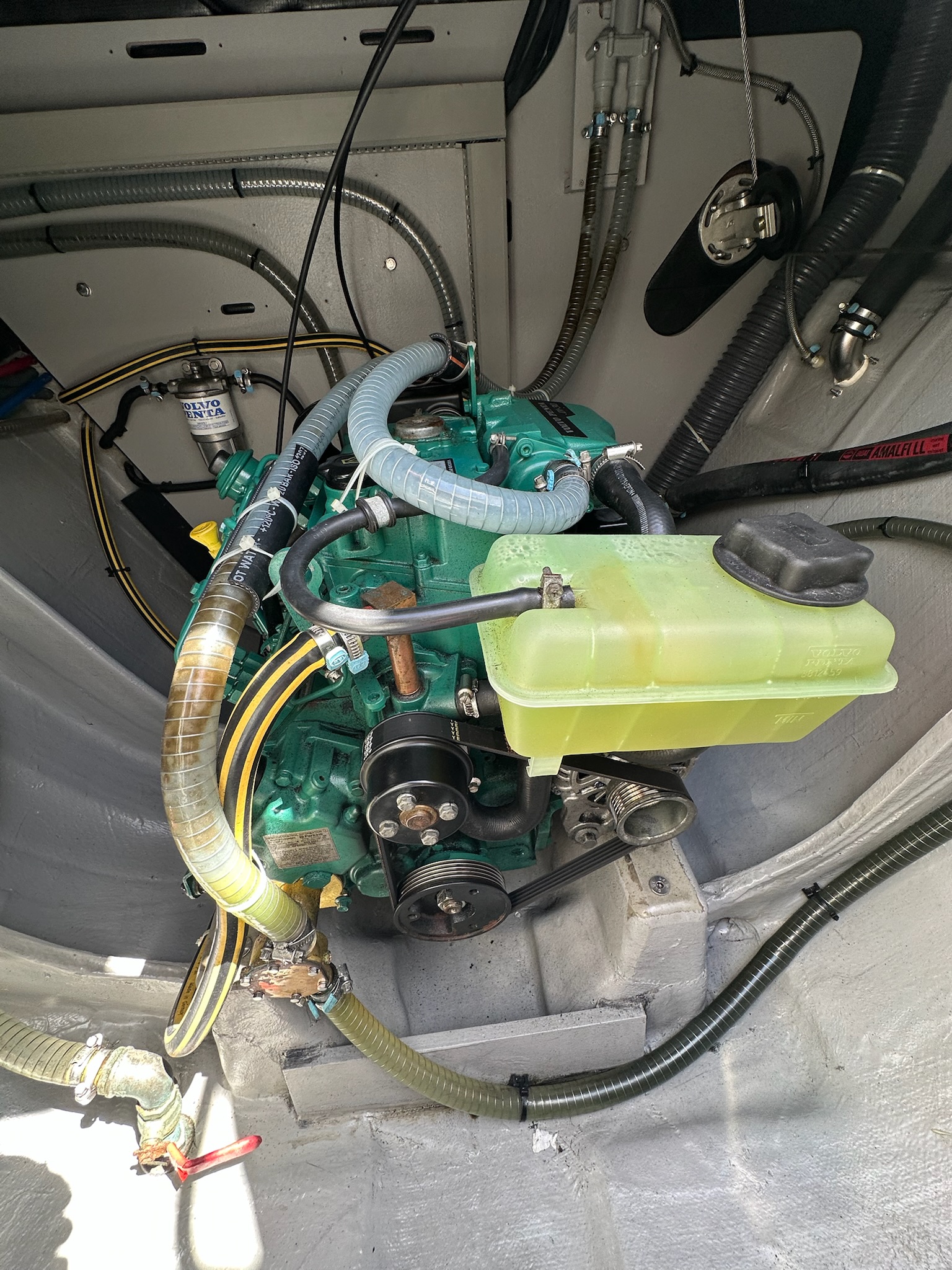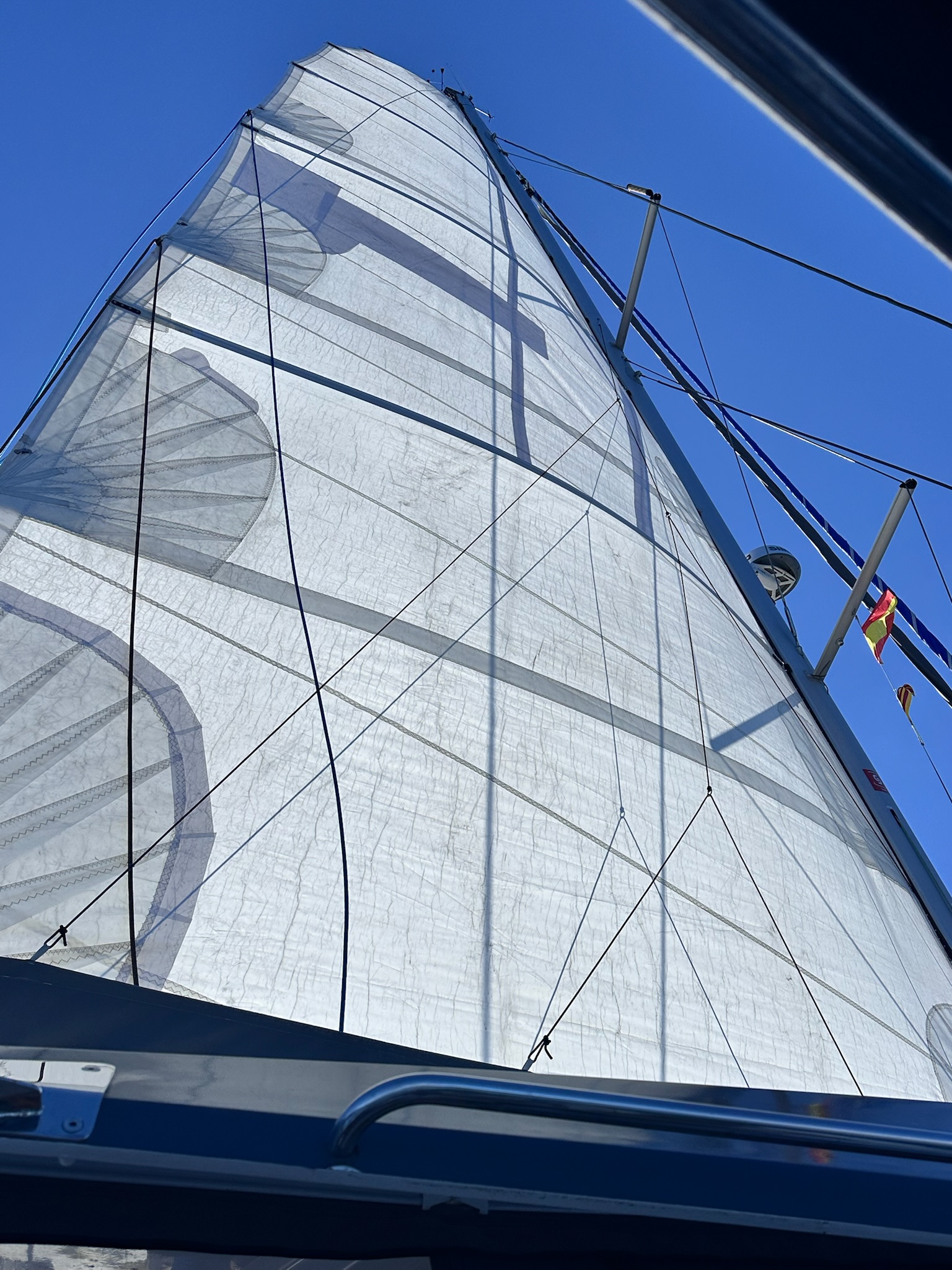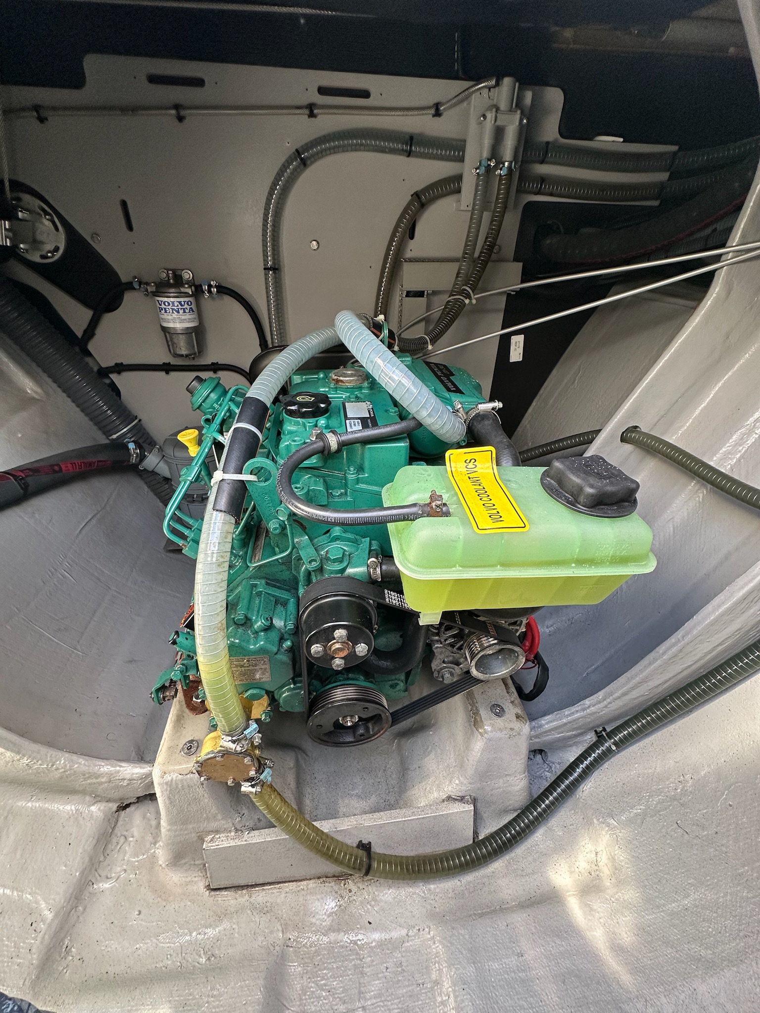 Happy Sail is equipped with Dacron sails (63 m² full-batten mainsail, 28 m² self-tacking jib, 103 m² Code D, and 55 m² Code 0 from Delta Voiles), recently serviced for worry-free sailing. Its Volvo Penta D1-30F engines (1,000 hours, recently serviced in December 2025) and 130 SR-D sail drives ensure exceptional reliability and handling.